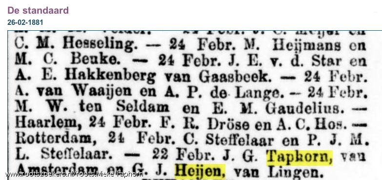 1881. Familieberichten.Gehuwd. Taphorn & Heijen.
